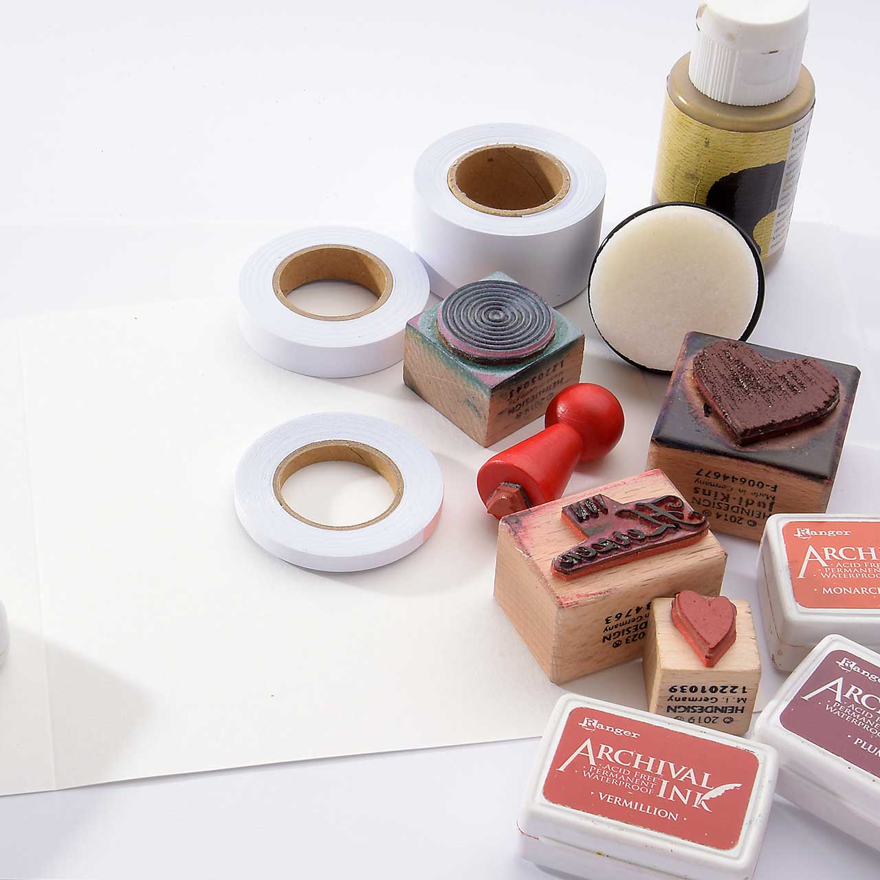 *Die weiße Pigment-Stempelfarbe funktioniert am besten, wenn Sie sie ein wenig „kneten“. Das heißt den Stempel öfter in das Stempelkissen tupfen und ein, zwei Probedrucke machen.